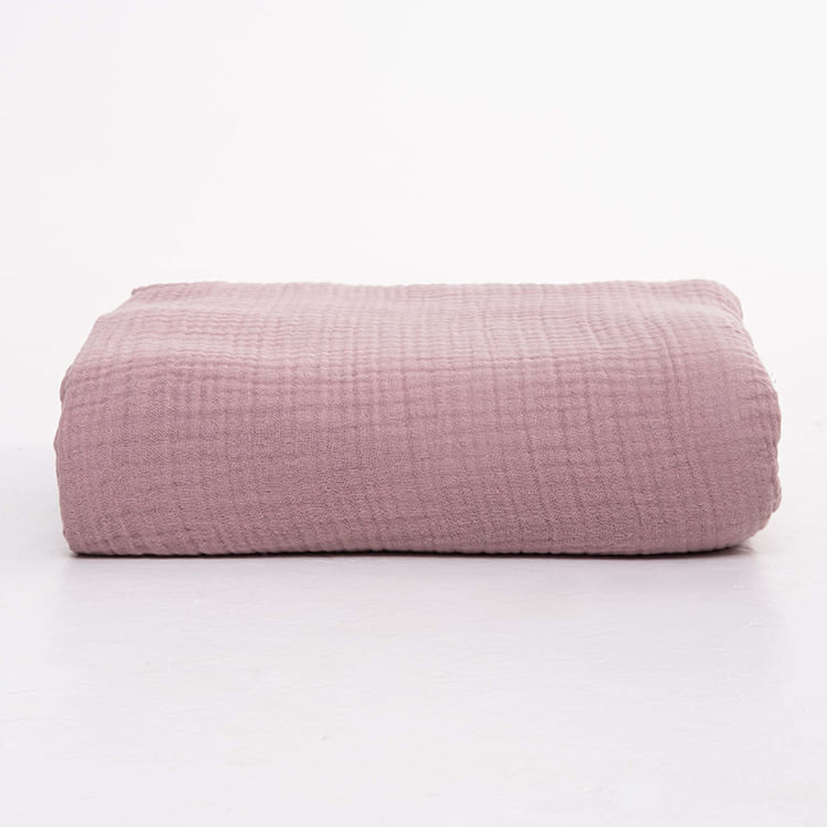 The multi-layered structure of the muslin blanket fabric provides excellent warmth while maintaining its lightness and natural softness.