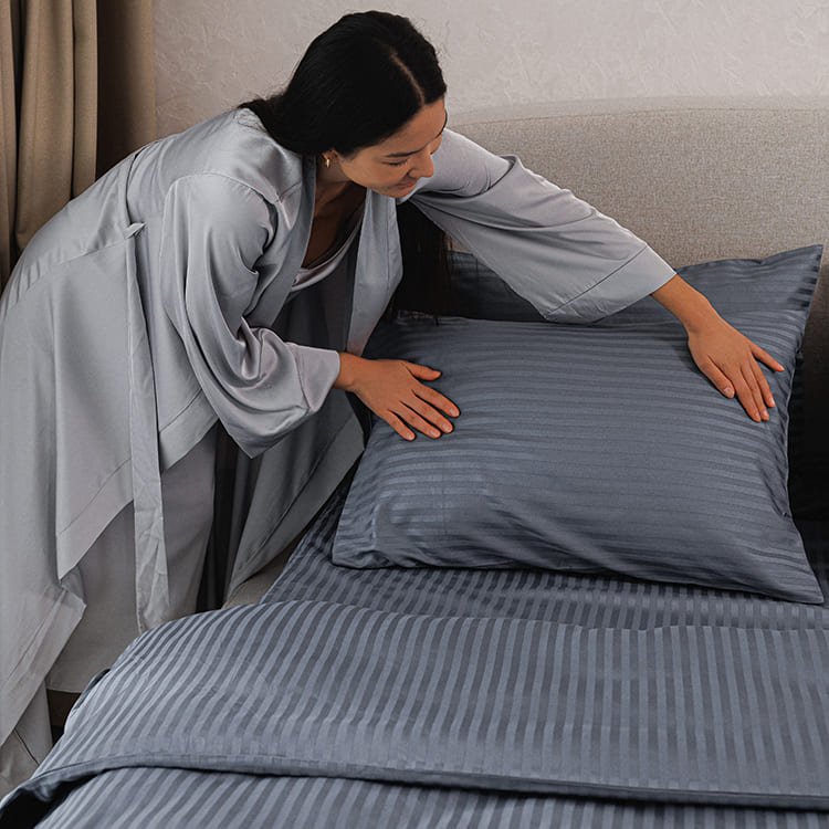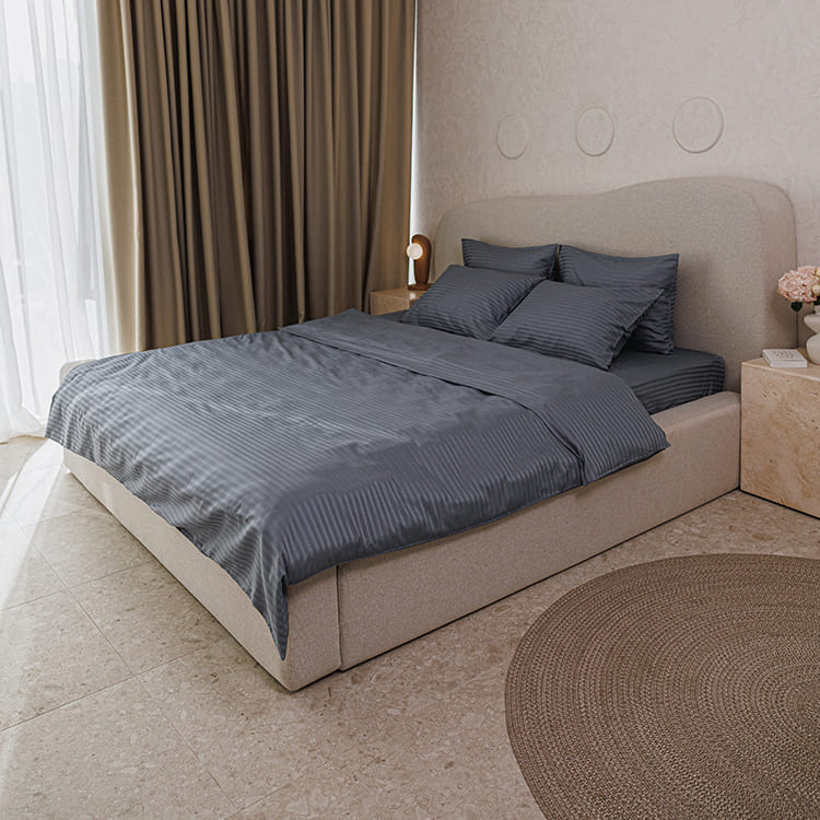 Due to the high fiber density of 480 threads, this material is durable and incredibly soft. The elegant pattern in the form of ribbons adds a special charm to the bed linen, making your bedroom stylish and cozy.
